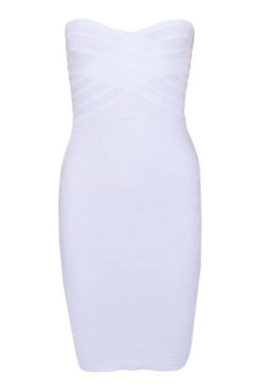 The Aaliyah Bandage Mini Dress in White Pearl is perfect for any special event featuring strapless shoulders, sculpting bandage bodice and above knee mini finish. More on the plus size? Our bodycon dresses range in all sizes, so get that bodycon wardrobe you’ve always wanted, today.