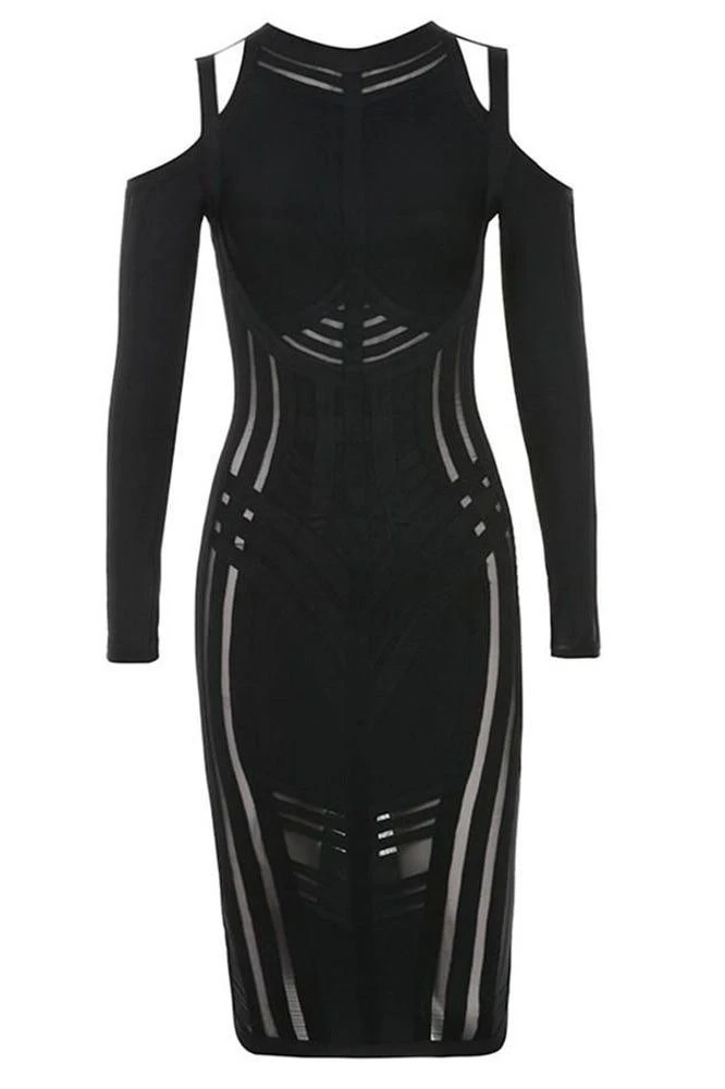 AMELIA LONG SLEEVE BANDAGE DRESS IN CLASSIC BLACK