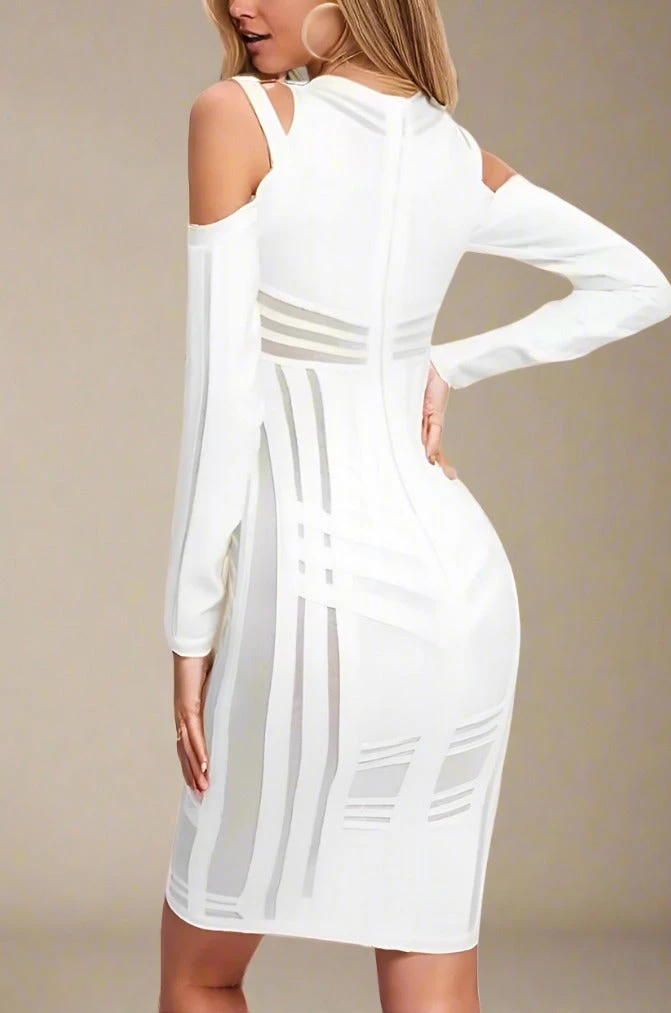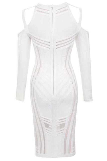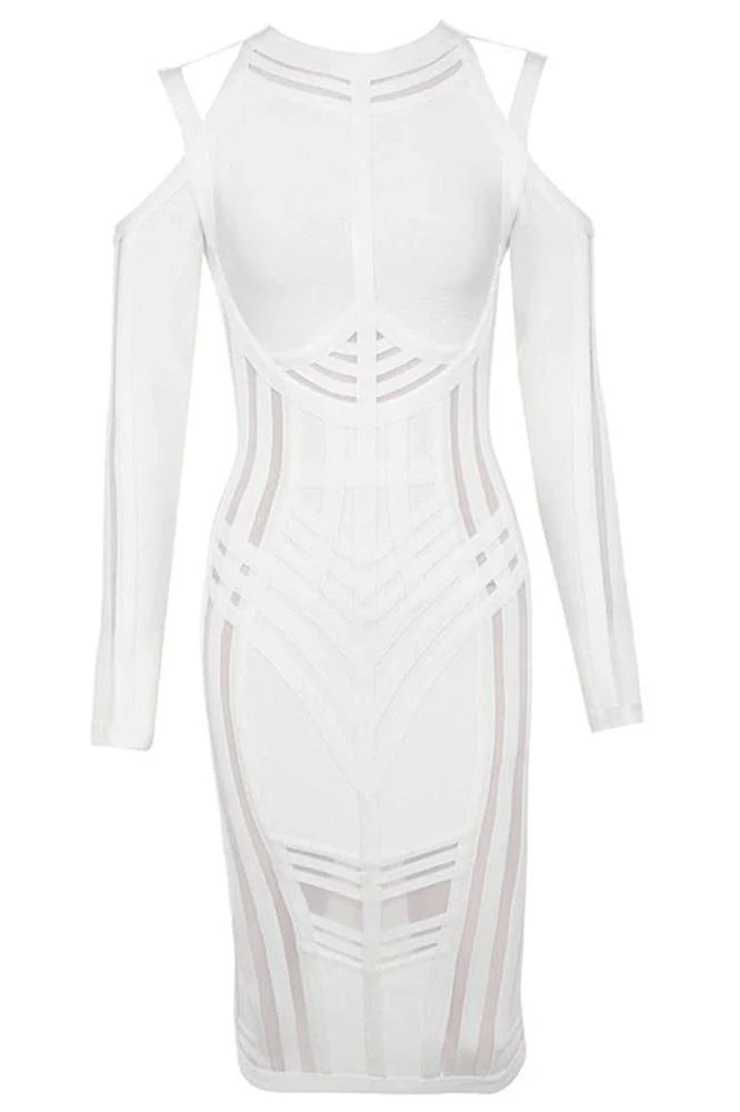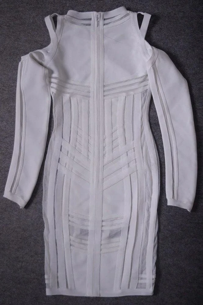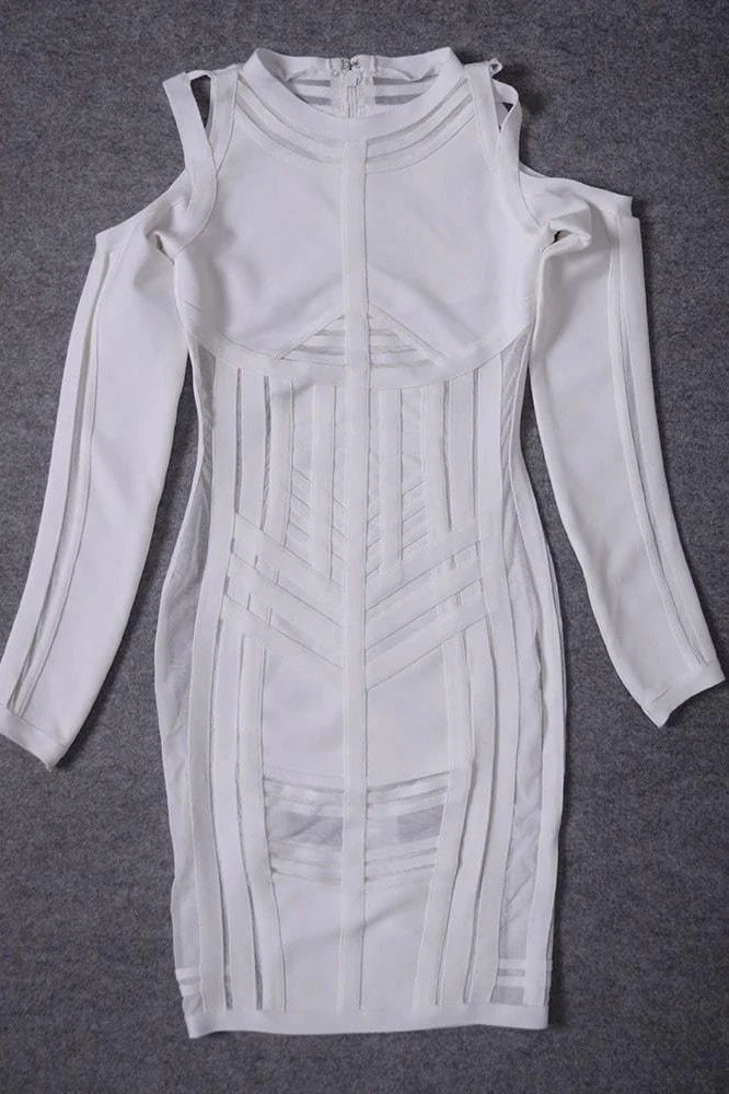 AMELIA LONG SLEEVE BANDAGE DRESS IN WHITE PEARL