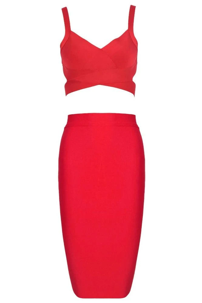 ANG BANDAGE TOP AND SKIRT SET IN LIPSTICK RED