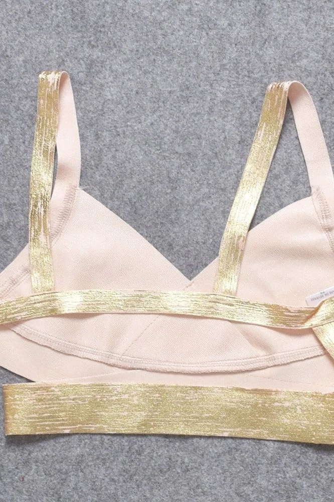 ANG BANDAGE TOP AND MINI SKIRT SET IN GOLD