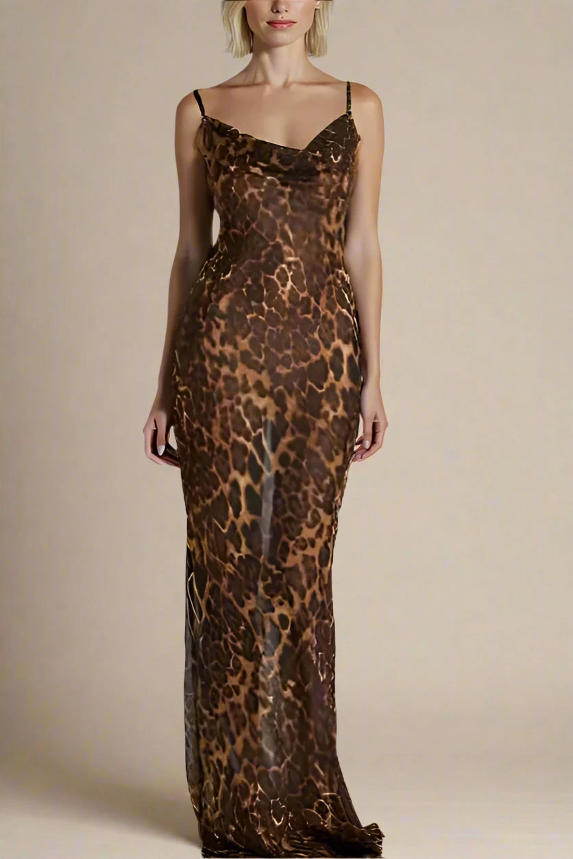 Discover the sophistication and grace of the Athena Bodycon Maxi Dress in Leopard Print Yellow. This gorgeous sheer dress has delicate spaghetti straps, a cowl neckline, a tie-up back, and falls to a long, flowy maxi length. With a range of sizes, fulfill all your bodycon dreams with our collection today.