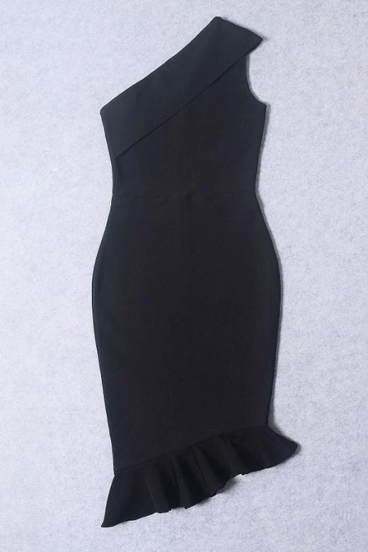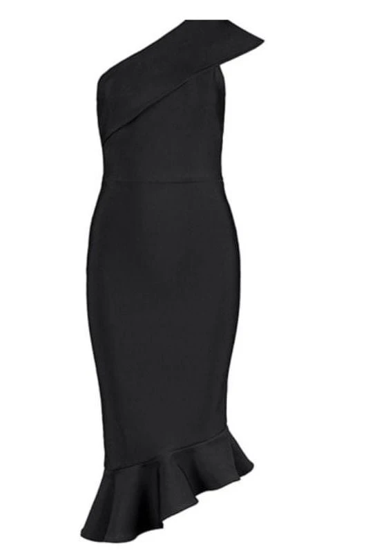 AVERY ONE SHOULDER MERMAIDE BANDAGE DRESS IN CLASSIC BLACK