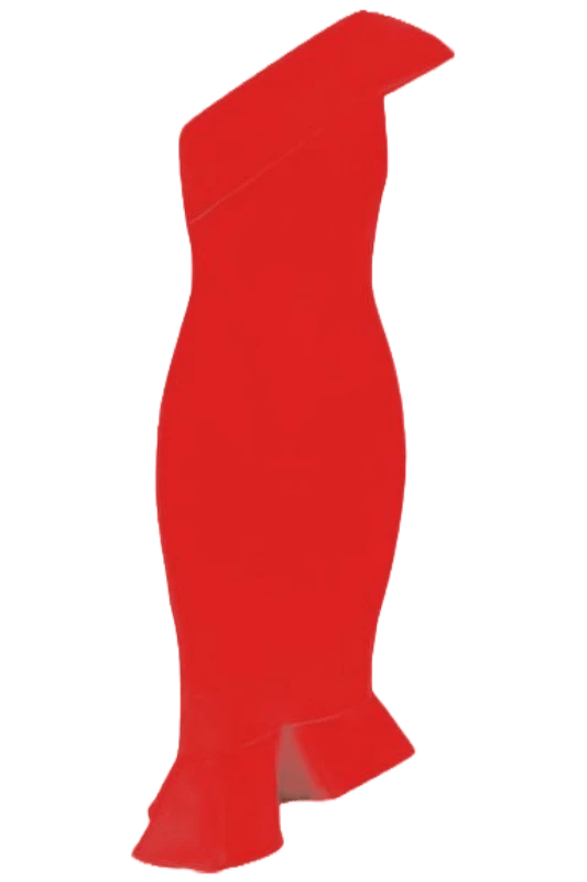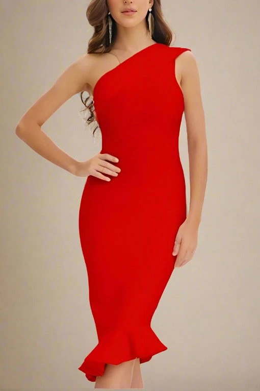 AVERY ONE SHOULDER MERMAID BANDAGE DRESS IN LIPSTICK RED