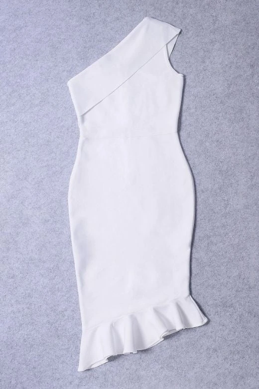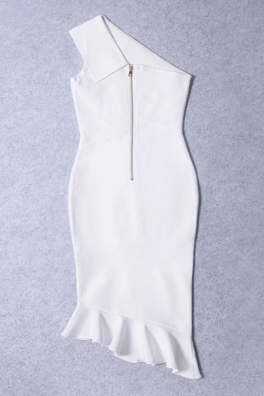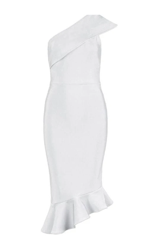 AVERY ONE SHOULDER MERMAID BANDAGE DRESS IN WHITE PEARL