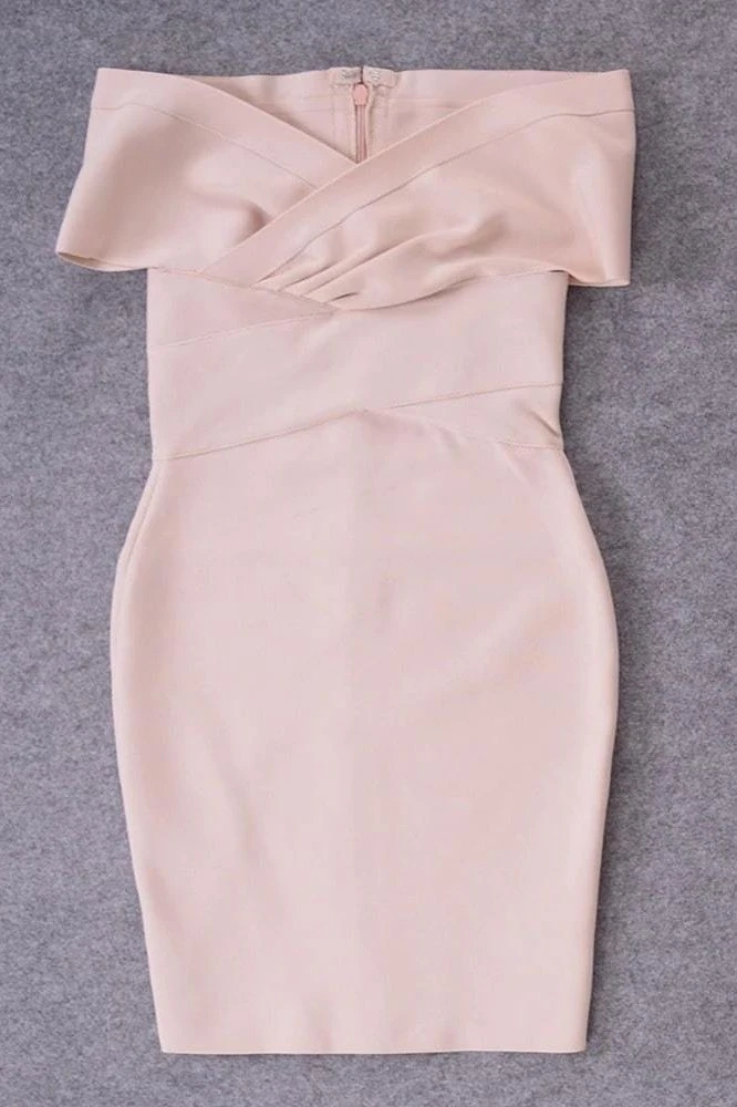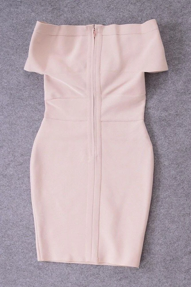 BEA OFF SHOULDER BANDAGE DRESS IN NUDE
