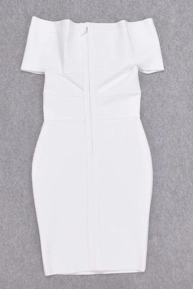 BEA OFF SHOULDER BANDAGE DRESS IN WHITE PEARL
