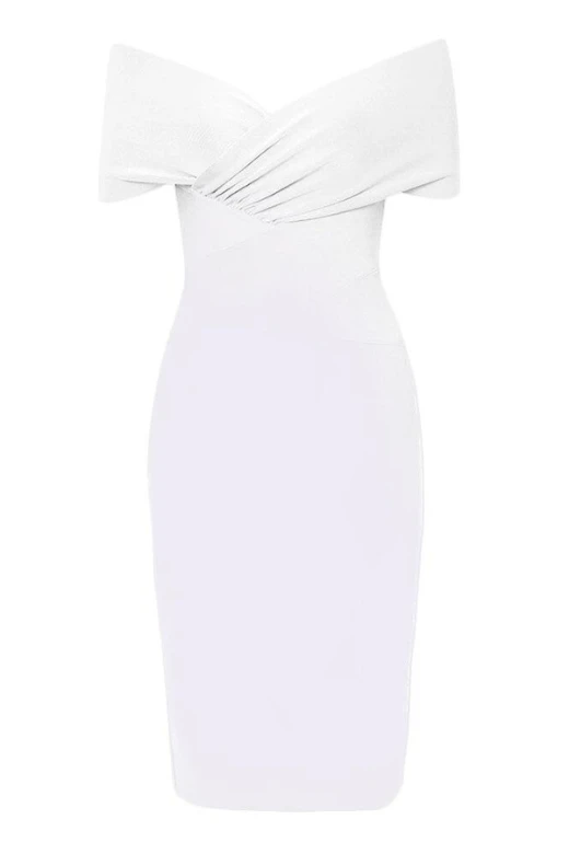 The Bea Off Shoulder Bandage Dress in White Pearl is perfect for that special event with off shoulder straps, wrap bodice, flattering V neckline and knee-length finish. More on the plus size? Our bodycon dresses range in all sizes, so get that bodycon wardrobe you’ve always wanted, today.