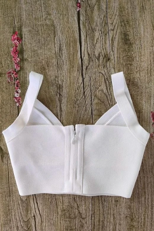 The Bee V Neck Bandage Crop Top in White Pearl is perfect for any special event with thin straps, a flattering v neck bust, thick shoulder straps,full back zipper and cute above-belly length crop top. More on the plus size? Our bandage crop tops range in all sizes, so get that bodycon wardrobe you’ve always wanted, today.