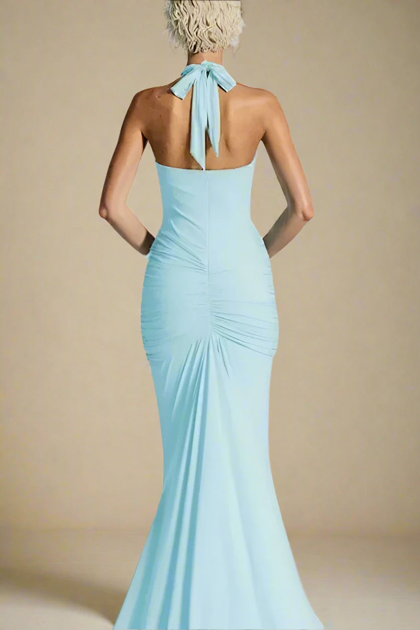 The Bella Bodycon Wrap Maxi Dress in Sky Blue is your next love affair, featuring a deep V neckline, a tie-up halter neck, and gathered ruching that flatters your figure. Its elegant maxi length adds a graceful touch. Available in a full range of sizes, our bodycon dresses will help you build the perfect figure-flattering wardrobe.