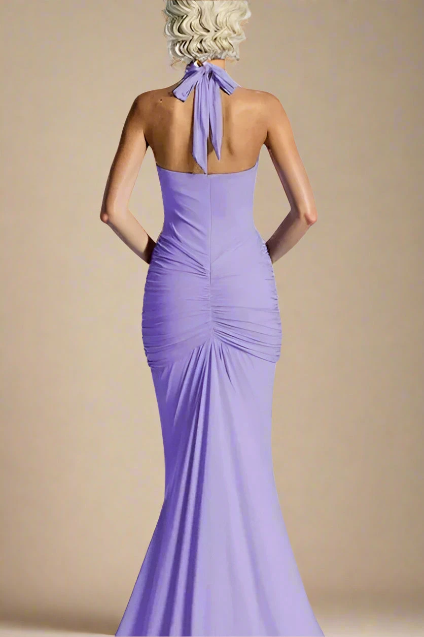 The Bella Bodycon Wrap Maxi Dress in Violet Purple is your next love affair, featuring a deep V neckline, a tie-up halter neck, and gathered ruching that flatters your figure. Its elegant maxi length adds a graceful touch. Available in a full range of sizes, our bodycon dresses will help you build the perfect figure-flattering wardrobe.