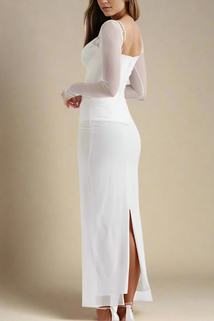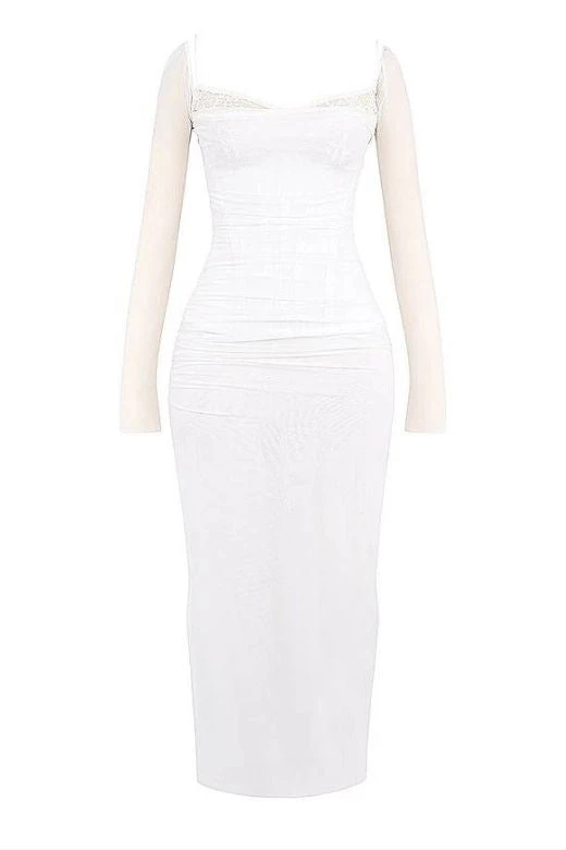 BRIANNA BODYCON LONG SLEEVE MAXI DRESS IN WHITE PEARL