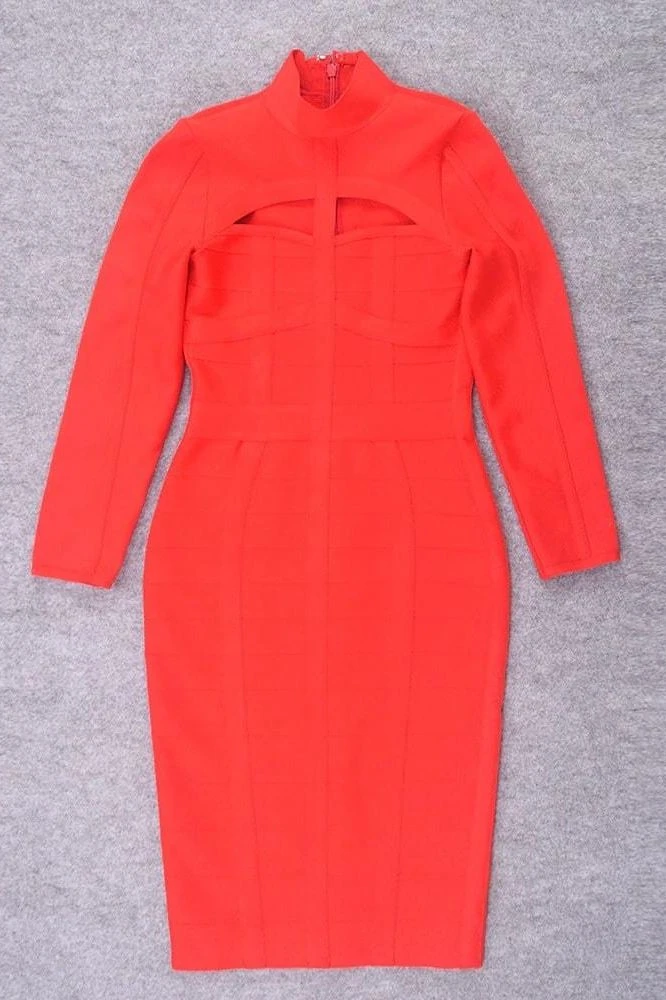 The Brooke Long Sleeve Bandage Dress in Lipstick Red is perfect for any special event featuring a high neckline, long sleeves, open bust detailing and knee-length finish. More on the plus size? Our bodycon dresses range in all sizes, so get that bodycon wardrobe you’ve always wanted, today.