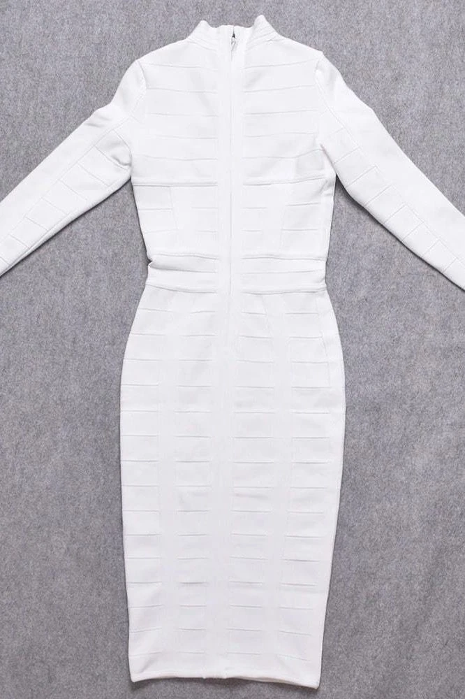 BROOKE LONG SLEEVE BANDAGE DRESS IN WHITE PEARL