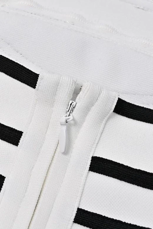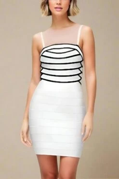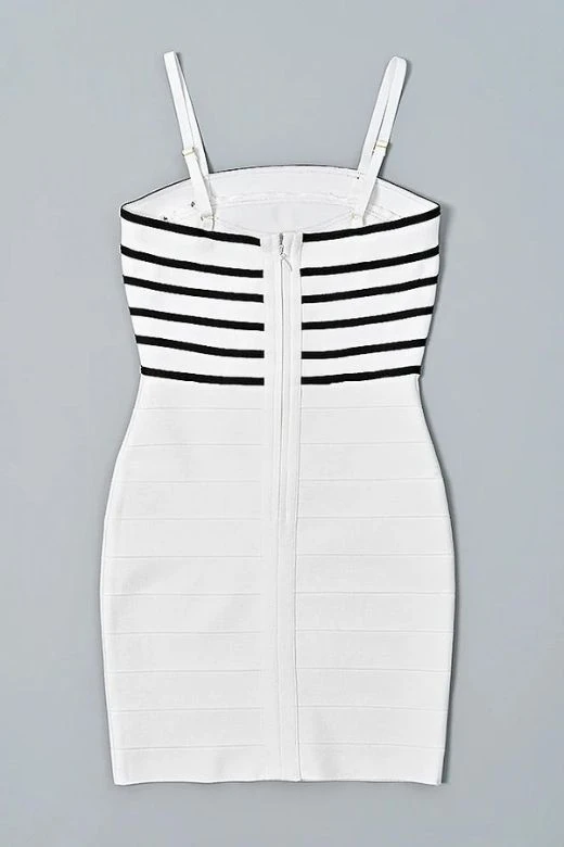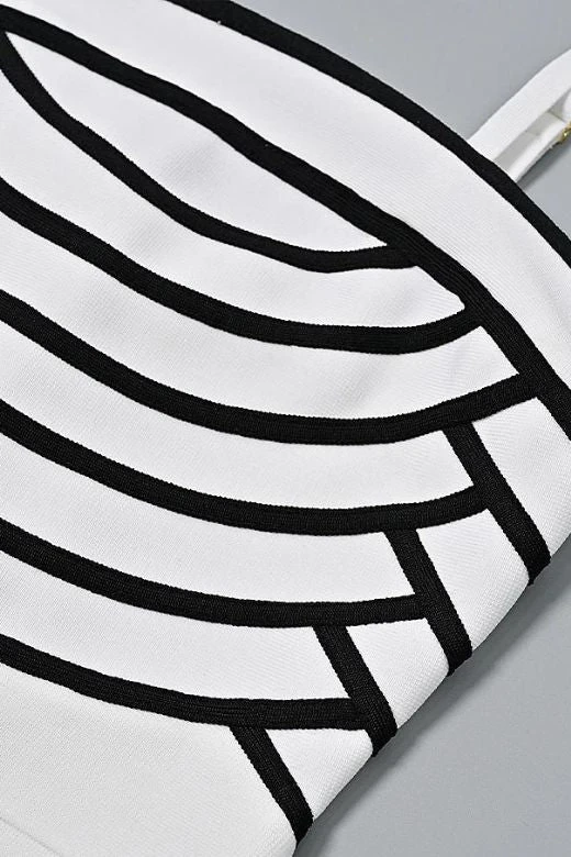 The Carter Bandage Mini Dress in White Pearl is perfect for any special event featuring spaghetti straps, sculpting bandage bodice with black and white pattern and above knee mini finish. More on the plus size? Our bodycon dresses range in all sizes, so get that bodycon wardrobe you’ve always wanted, today.