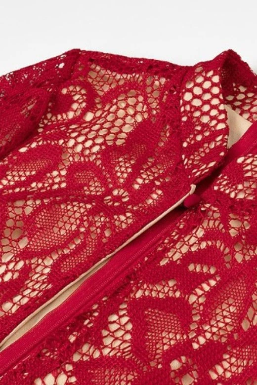 CHARLOTTE LONG SLEEVE BODYCON LACE MIDI DRESS IN CHILLI RED