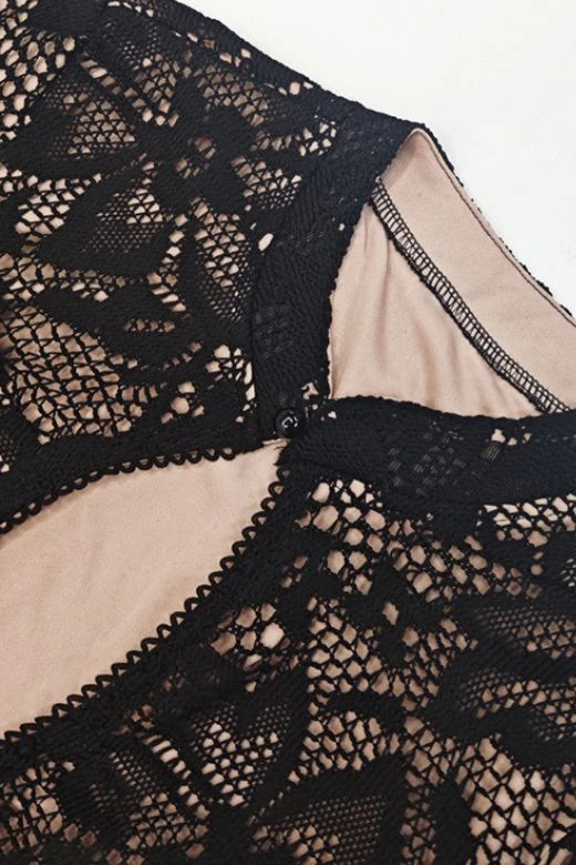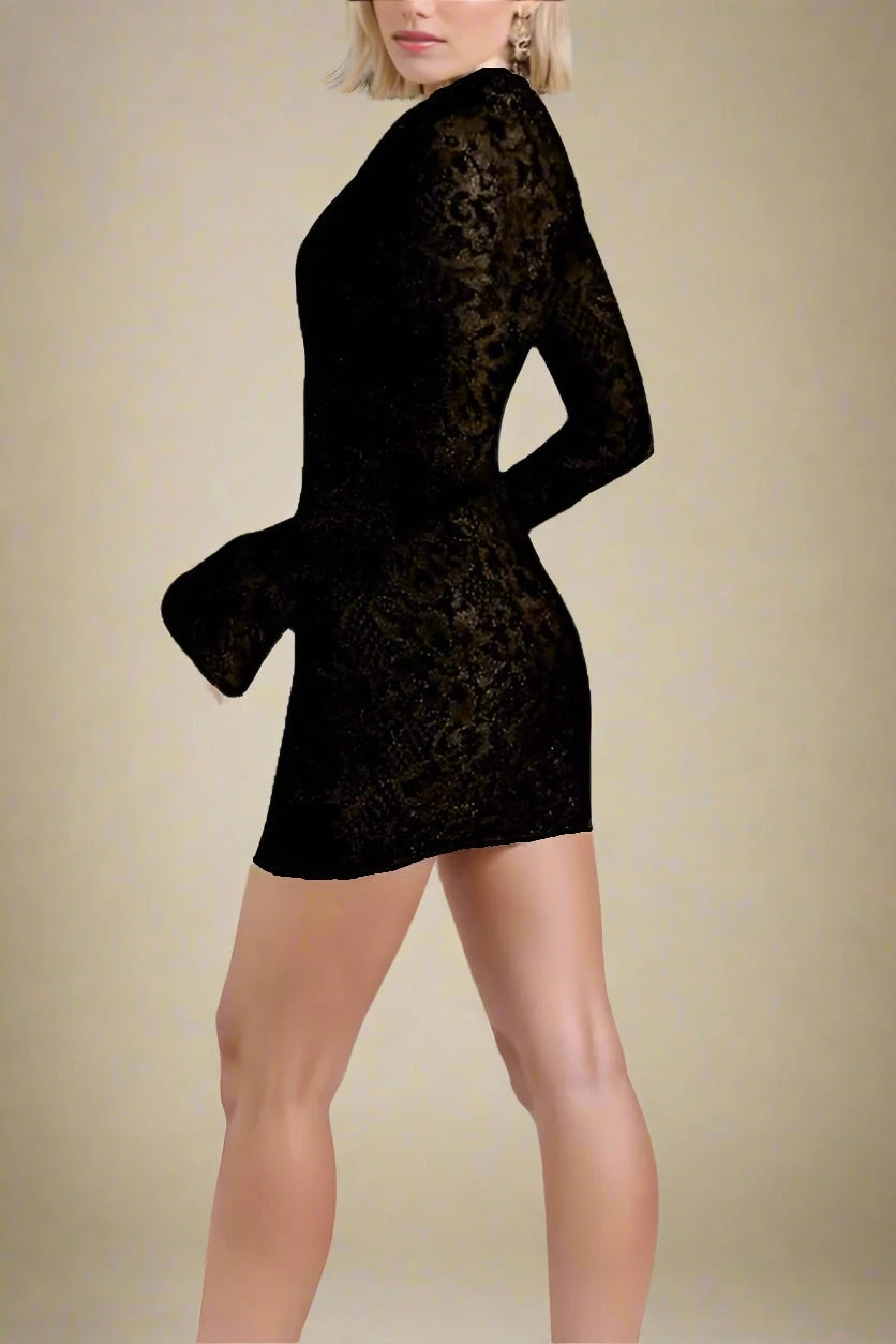 CHARLOTTE LONG SLEEVE BODYCON LACE MINI DRESS IN CLASSIC BLACK
