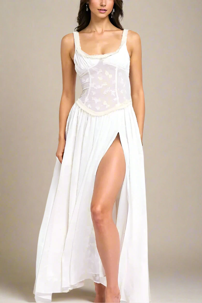 COLLINS BODYCON LACE MAXI DRESS IN WHITE PEARL