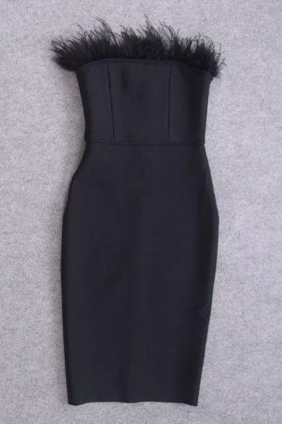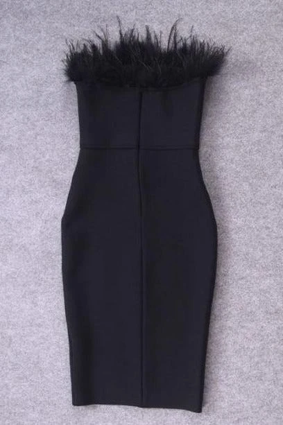 ERIN STRAPLESS FEATHER BANDAGE DRESS IN CLASSIC BLACK
