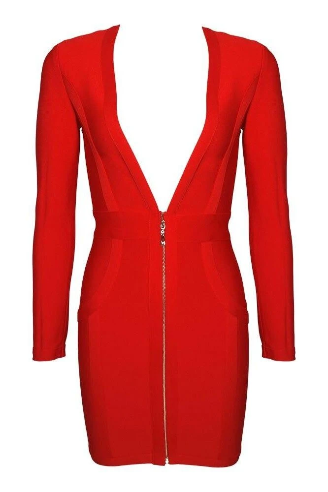 The Eva Long Sleeve Bandage Mini Dress in Lipstick Red is the perfect sexy red dress with long sleeves, full-length zipper with plunging V neck and cute mini length finish. More on the plus size? Our bodycon dresses range in all sizes, so get that bodycon wardrobe you’ve always wanted, today.