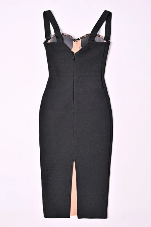GENEVIEVE BODYCON LACE MIDI DRESS IN CLASSIC BLACK