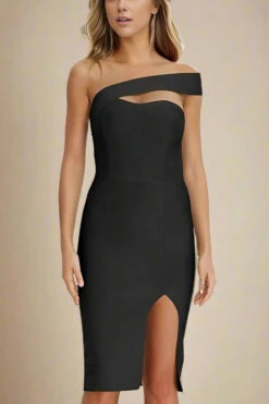 GIANNA ONE SHOULDER BANDAGE DRESS IN CLASSIC BLACK