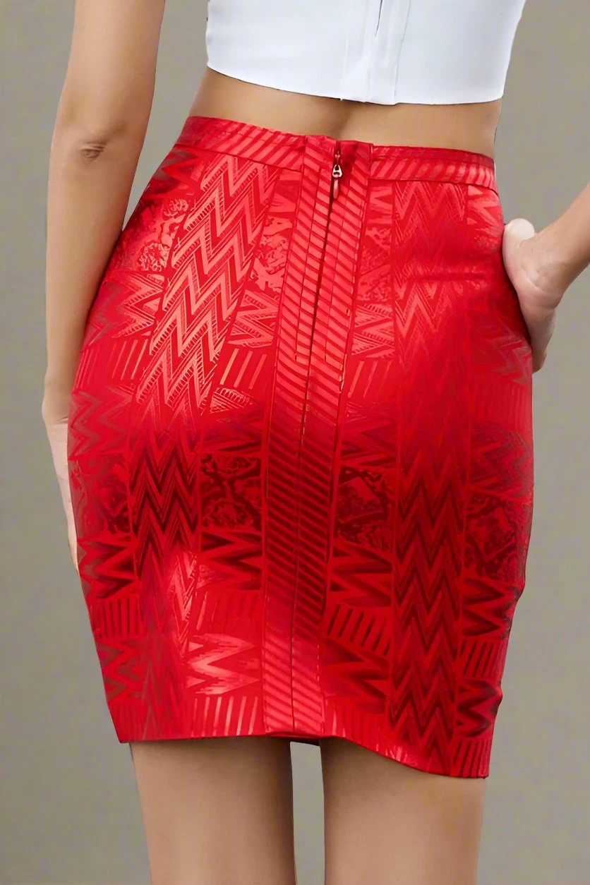 HIGH WAIST METALLIC MINI SKIRT IN LIPSTICK RED