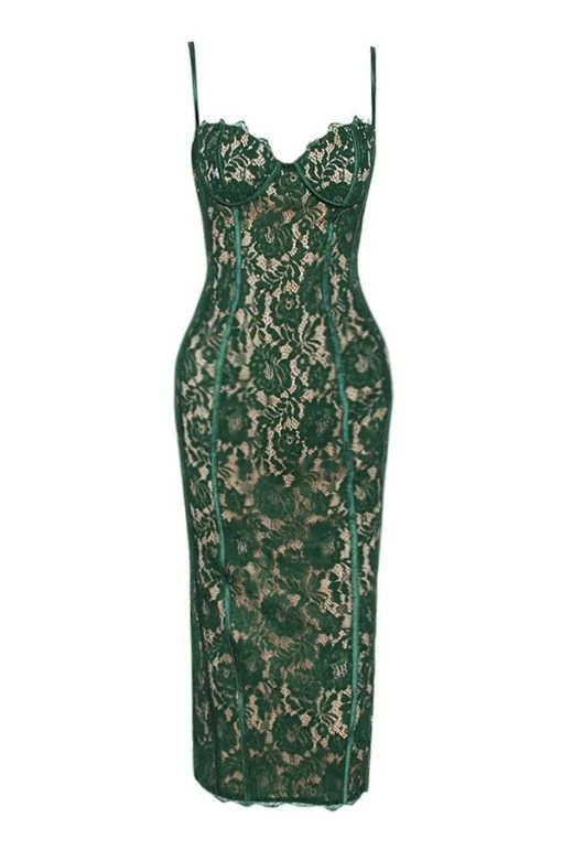HONOR BODYCON LACE MIDI DRESS IN EMERALD GREEN
