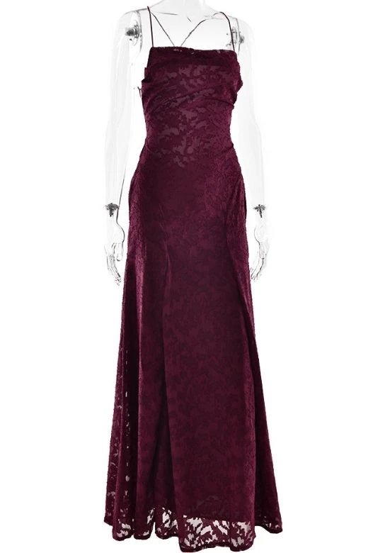 IVY BODYCON LACE MAXI DRESS IN RED WINE