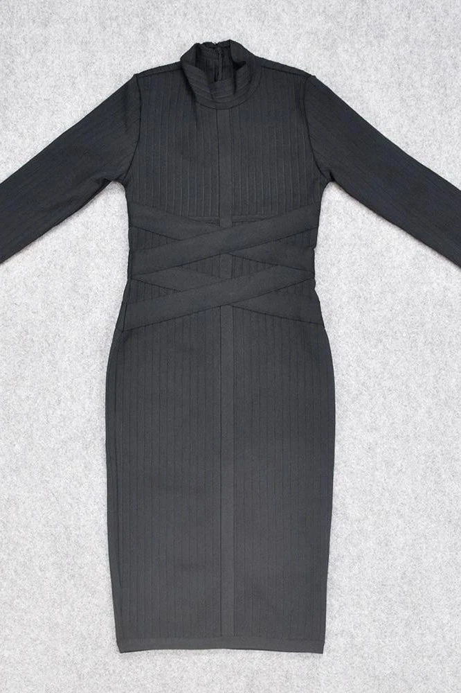 JANE LONG SLEEVE BODYCON MIDI DRESS IN CLASSIC BLACK