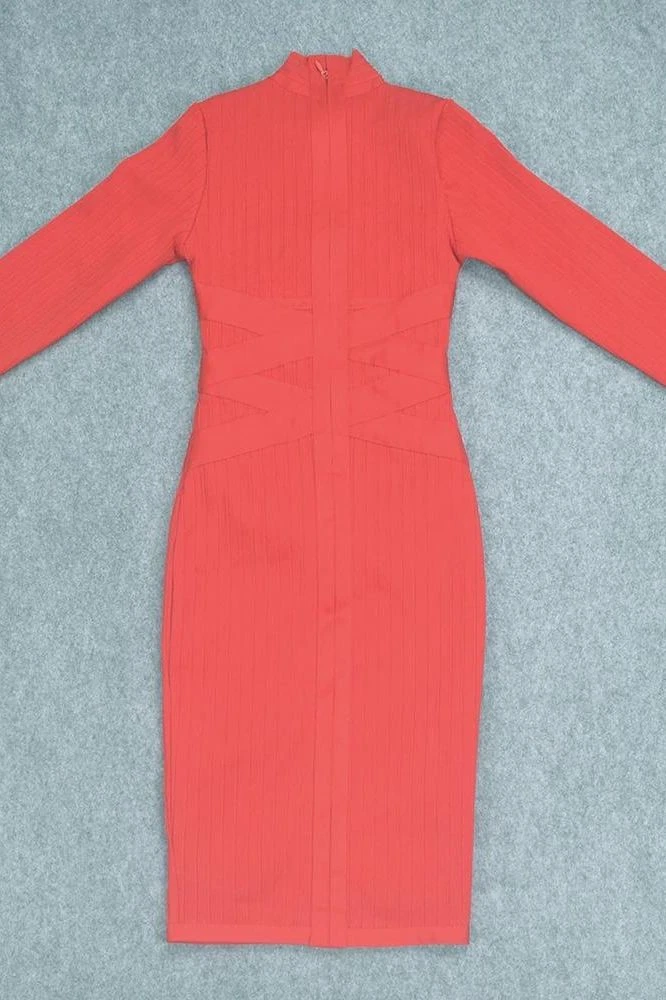 JANE LONG SLEEVE BODYCON MIDI DRESS INÂ LIPSTICK RED