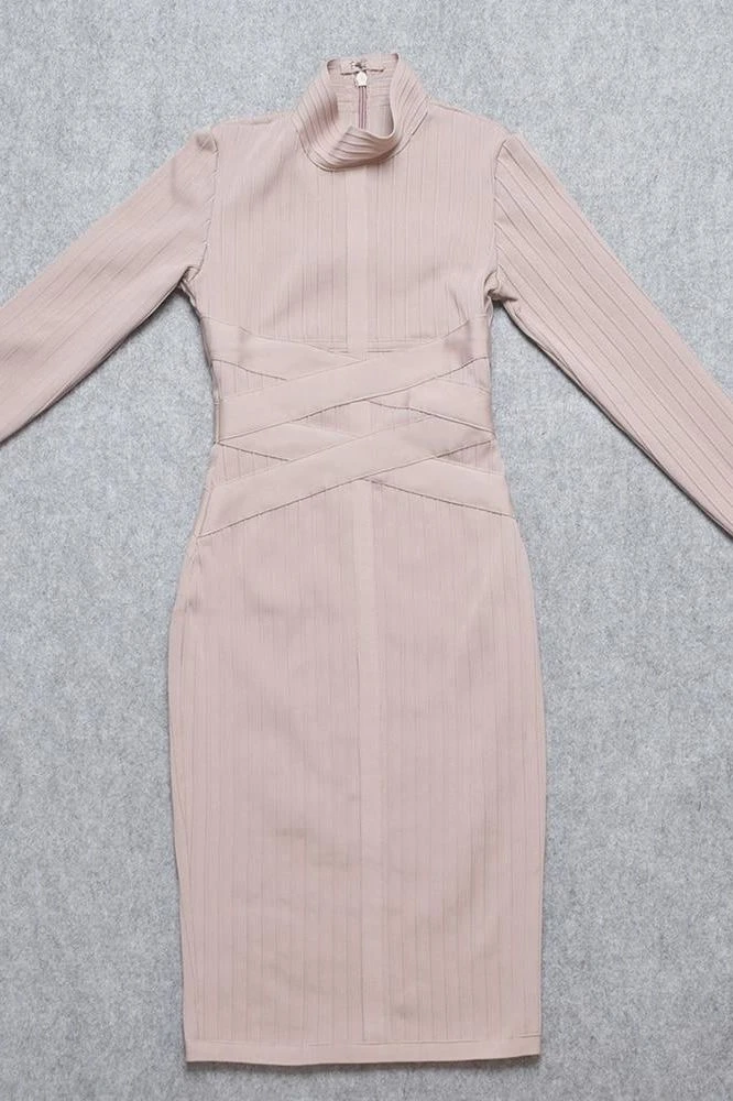 JANE LONG SLEEVE BODYCON MIDI DRESS IN NUDE