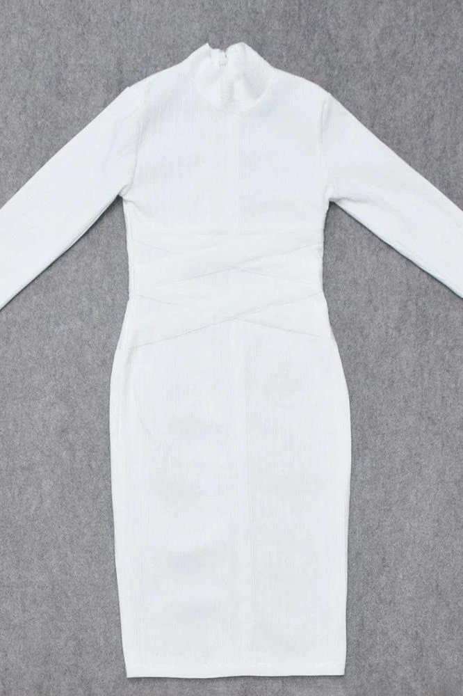 The Jane Long Sleeve Bodycon Midi Dress in White Pearl is perfect for any event with a high neckline, long sleeves, contouring wrap bodice and over knee midi length finish. More on the plus size? Our bodycon dresses range in all sizes, so get that bodycon wardrobe you’ve always wanted, today.