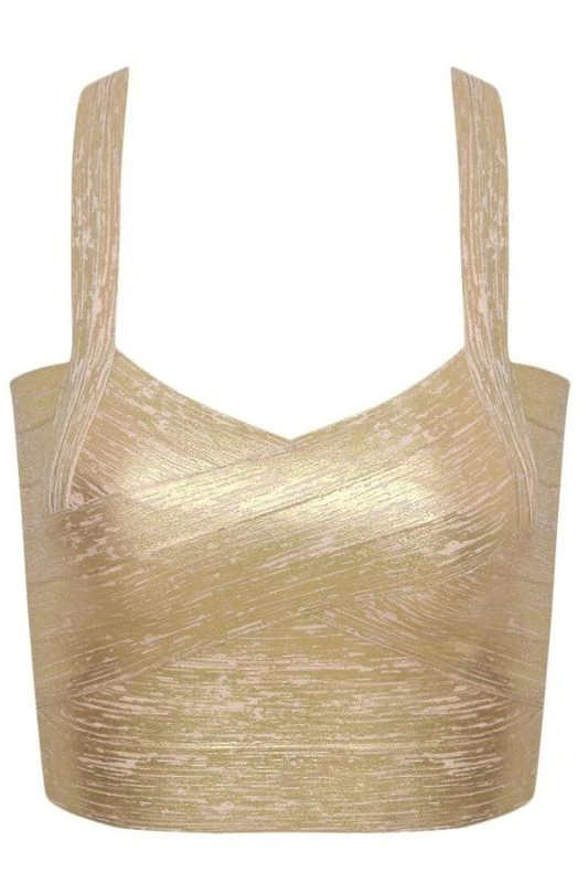 The Jay Bandage Crop Top in Gold is perfect for any special event with thick straps, flattering v neck wrap bust, cross back and cute above belly length crop at approximately 34cms. More on the plus size? Our bandage crop tops range in all sizes, so get that bodycon wardrobe you’ve always wanted, today.