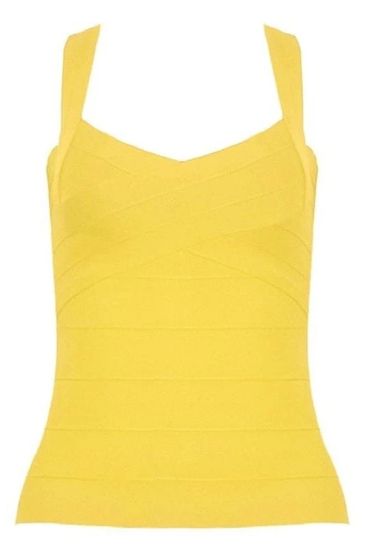 The full length Jay Bandage Top in Sun Yellow is perfect for any special event with thick straps, flattering v neck wrap bust, cross back and below belly length crop at approximately 50cms. More on the plus size? Our bandage crop tops range in all sizes, so get that bodycon wardrobe you’ve always wanted, today.
