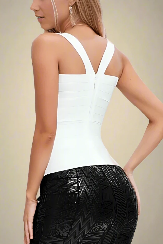 The full length Jay Bandage Top in White Pearl is perfect for any special event with thick straps, flattering v neck wrap bust, cross back and below belly length crop at approximately 50cms. More on the plus size? Our bandage crop tops range in all sizes, so get that bodycon wardrobe you’ve always wanted, today.