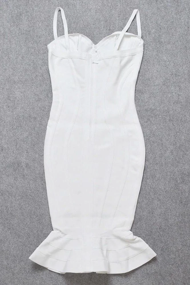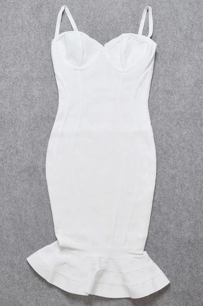 The Joy Thin Strap Peplum Bandage Midi Dress in White Pearl, perfect for any special event with thin shoulder straps, sculpting heart-shaped bust bodice and midi length peplum ruffled finish. More on the plus size? Our bodycon dresses range in all sizes, so get that bodycon wardrobe you’ve always wanted, today.