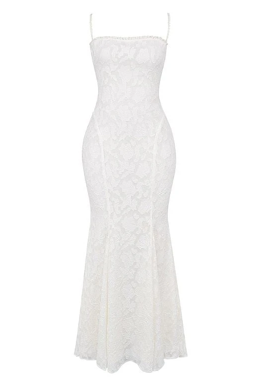 KORA BODYCON LACE MAXI DRESS IN WHITE PEARL