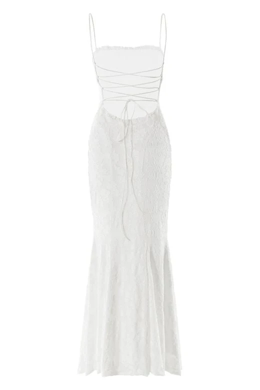 Experience ultimate elegance and sophistication with the Kora Bodycon Maxi Dress in White Pearl. This stunning lace backless dress features thin spaghetti straps, a straight neckline, intricate lace detailing, a lace up adjustable back, and a graceful maxi length. With a variety of sizes available, including plus sizes, complete your dream bodycon wardrobe today.