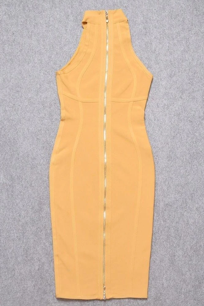 LEA HIGH NECK BANDAGE DRESS IN MUSTARD YELLOW