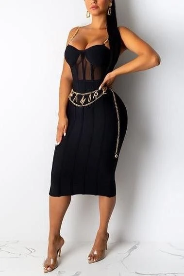 The Leah Bodycon Midi Dress in Classic Black is perfect for any special event with gold chain shoulder straps, flattering mesh corset and above knee finish. More on the plus size? Our bodycon dresses range in all sizes, so get that bodycon wardrobe you’ve always wanted, today.