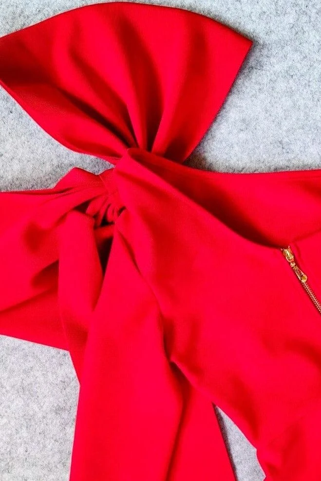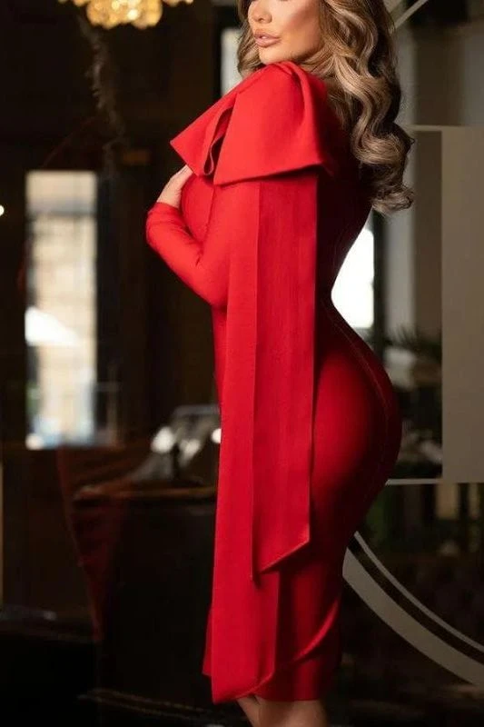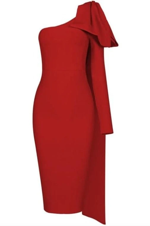 The Lela Bandage Midi Dress in Lipstick Red is perfect for any special event with flattering one sleeve with statement bow detailing, full length zip and below knee finish. More on the plus size? Our bodycon dresses range in all sizes, so get that bodycon wardrobe you’ve always wanted, today.Â