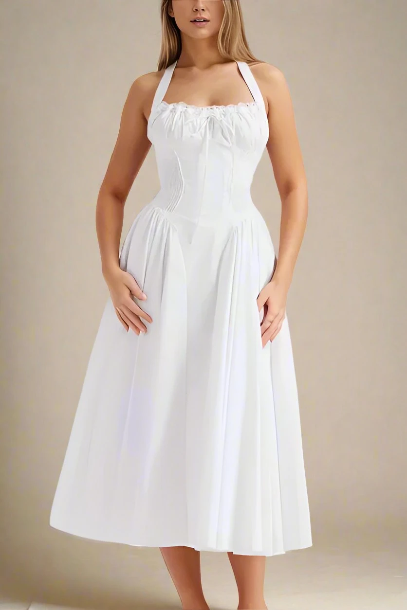 Experience the ultimate level of sophistication with our Lynsie Bodycon Midi Dress, available in White Pearl. Designed for any special event, this dress features thick spaghetti straps, a halter neckline, and a sweetheart bust, with an a-line skirt for a midi length finish. Plus, our bodycon dresses come in a variety of sizes, so you can build your perfect wardrobe today.