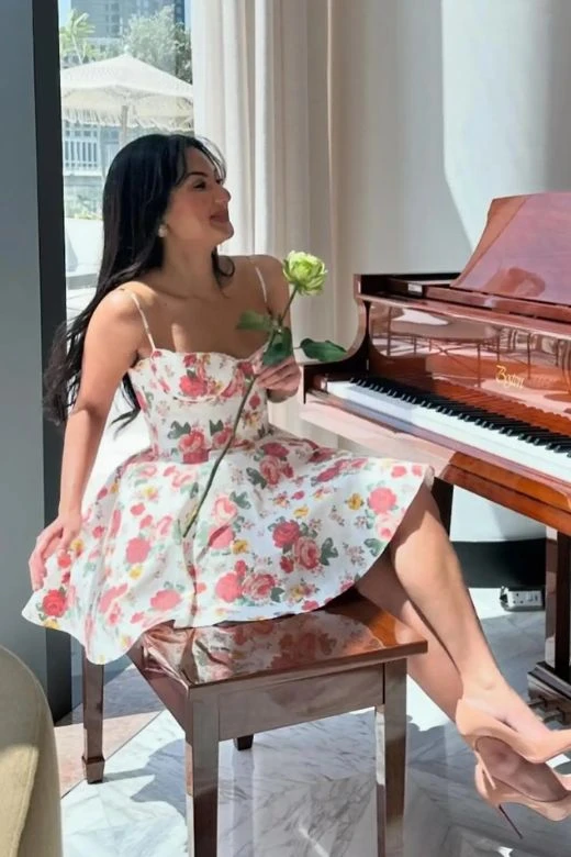 “It’s so beautiful 😍 I went with the smallest size, XS and my measurements are Bust: 33 inch, Waist: 25 inch, Hip: 36 inch and I am 5’1”