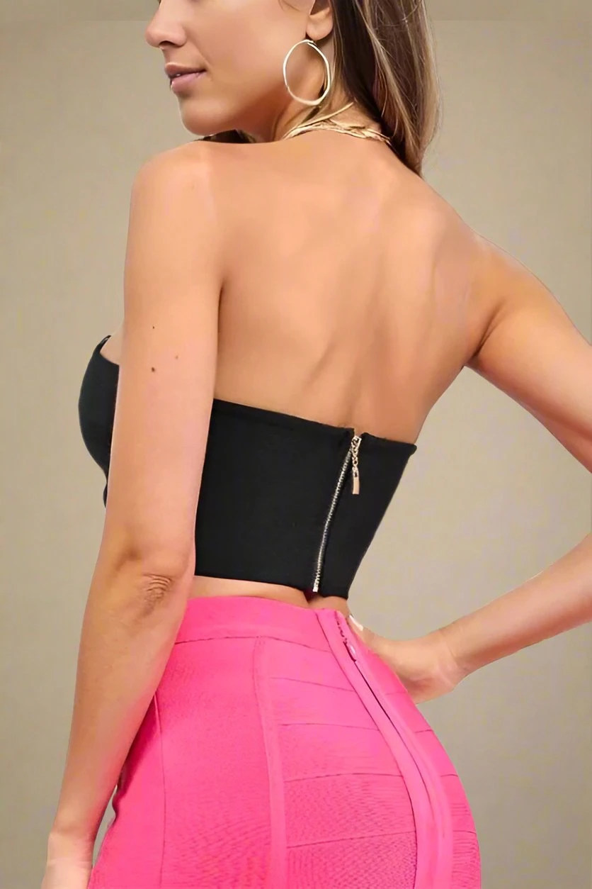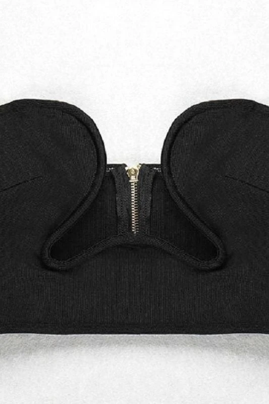 The Mika Bandage Crop Top in Classic Black is the perfect crop with plunging neck line, flattering bust and full length zipper. More on the plus size? Our bodycon designs range in all sizes, so get that bodycon wardrobe you’ve always wanted, today.