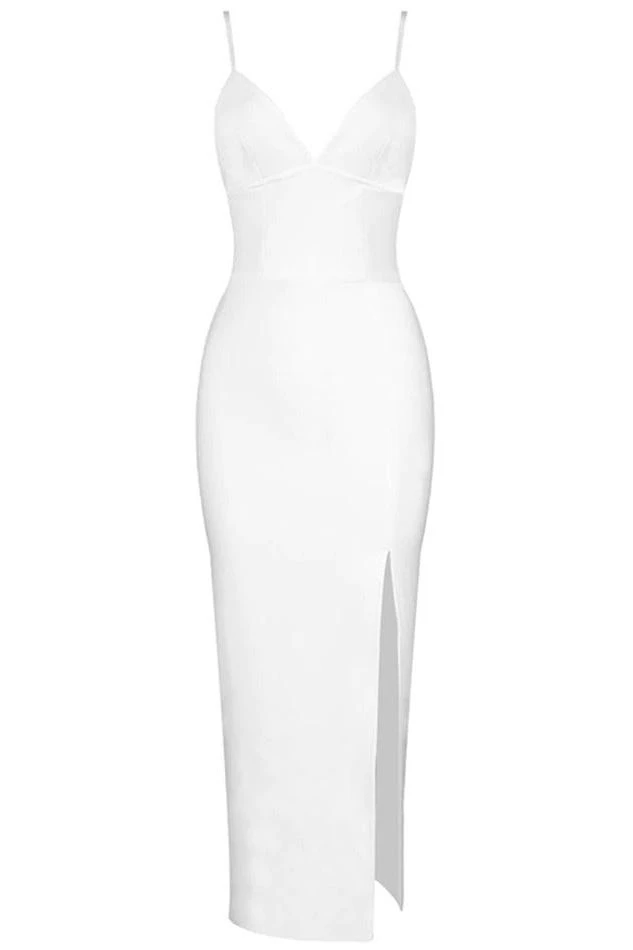 The Milan Corset Style Bandage Midi Dress in White Pearl is perfect for any special event, with thin side shoulder straps, flattering v neck corset-style bodice and above-knee finish with high thigh slit. More on the plus size? Our bodycon dresses range in all sizes, so get that bodycon wardrobe you’ve always wanted, today.