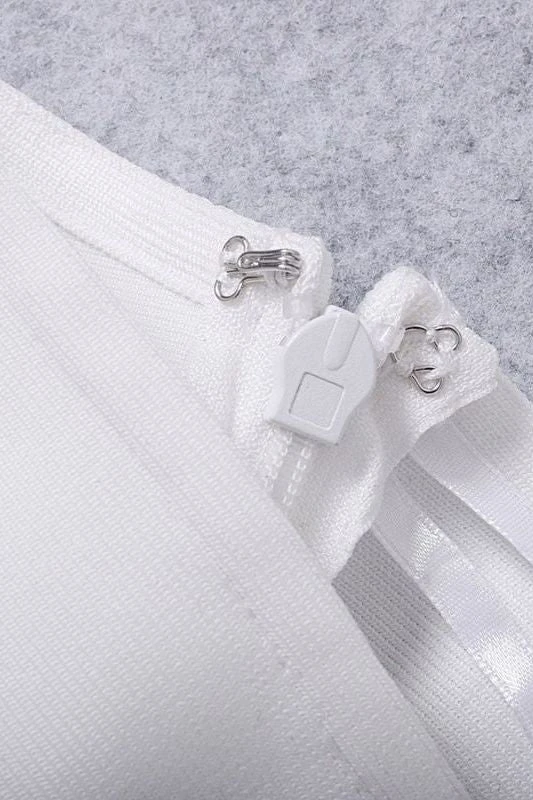 The Molly One Shoulder Bandage Dress in White Pearl is perfect for any special event with thin cross shoulder straps, hollow mid-drift feature and below knee, midi length finish. More on the plus size? Our bodycon dresses range in all sizes, so get that bodycon wardrobe you’ve always wanted, today.