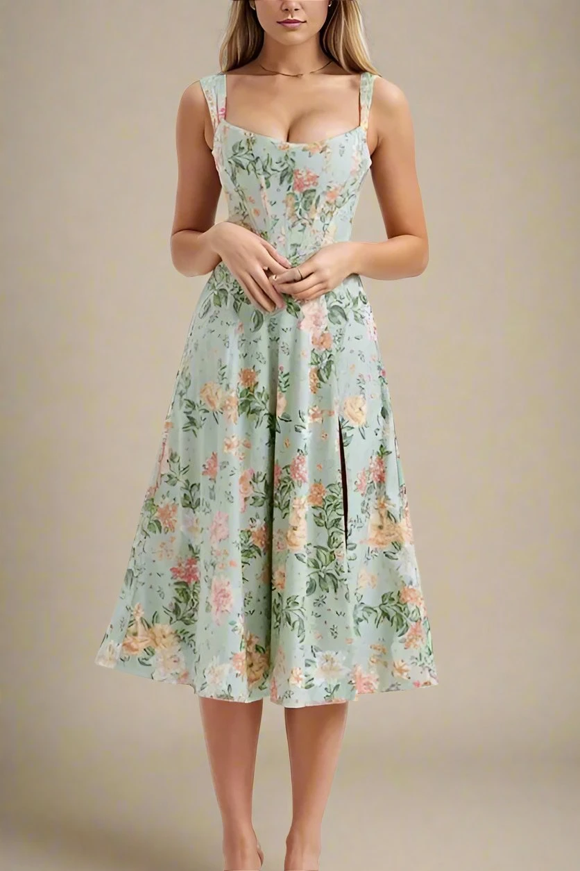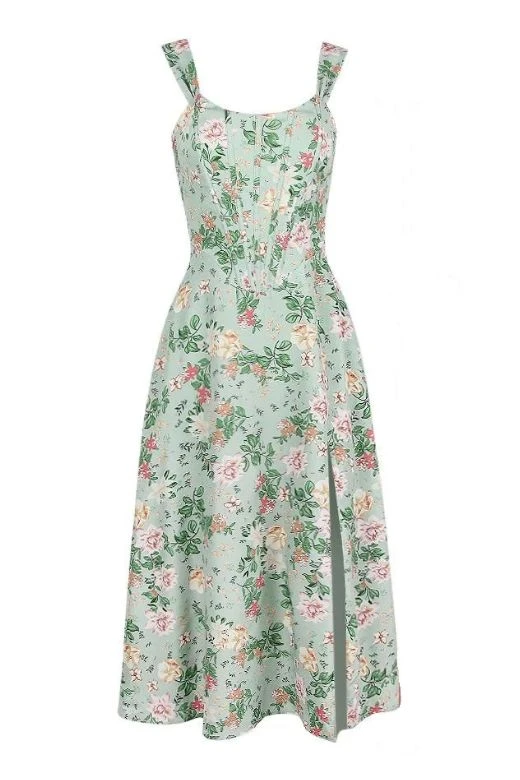 The Monique Corset Bodycon Dress in floral Mint Green is perfect for any special event featuring corset-style gathered bodice, thick straps, high thigh slit, corset tie up back and knee-length A -Line finish. More on the plus size? Our bodycon dresses range in all sizes, so get that bodycon wardrobe you’ve always wanted, today.