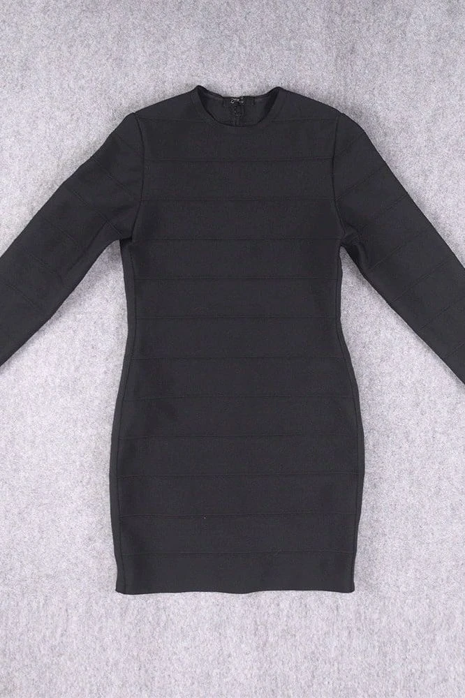 PAMELA LONG SLEEVE BODYCON MINI DRESS IN CLASSIC BLACK