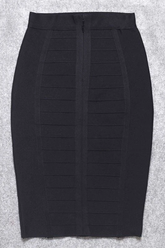 PENCIL HIGH WAIST BANDAGE KNEE LENGTH COCKTAIL SKIRT IN CLASSIC BLACK